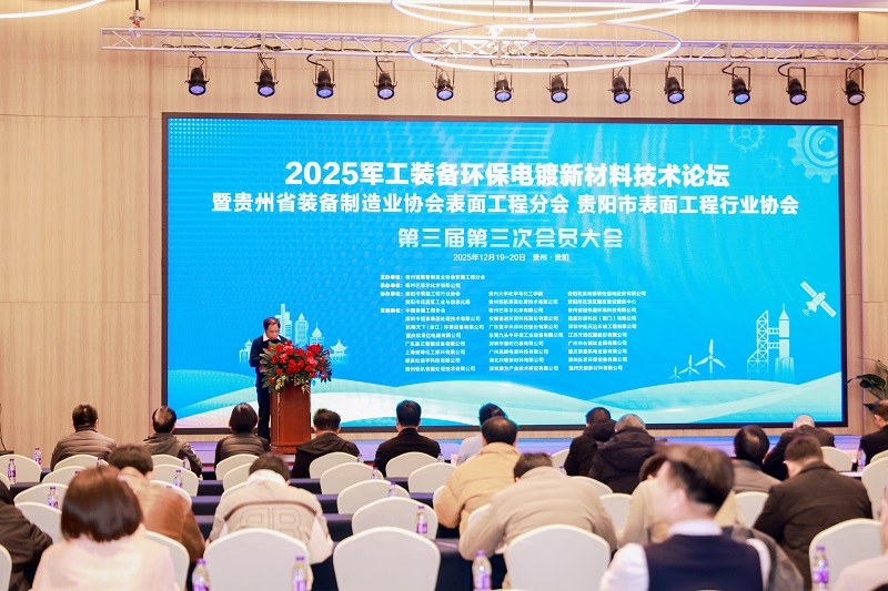 為響應國家“科技強軍”戰略推動軍工裝備表面處理綠色化、智能化發展,深化環保創新與新材料的應用,由貴州省裝備制造業協會表面工程分會舉辦的“2025軍民融合裝備環保電鍍新材料應用技術高峰論壇暨環保新材料及生產裝備展”,于2025年12月20在貴陽青巖假日度假酒店隆重召開。